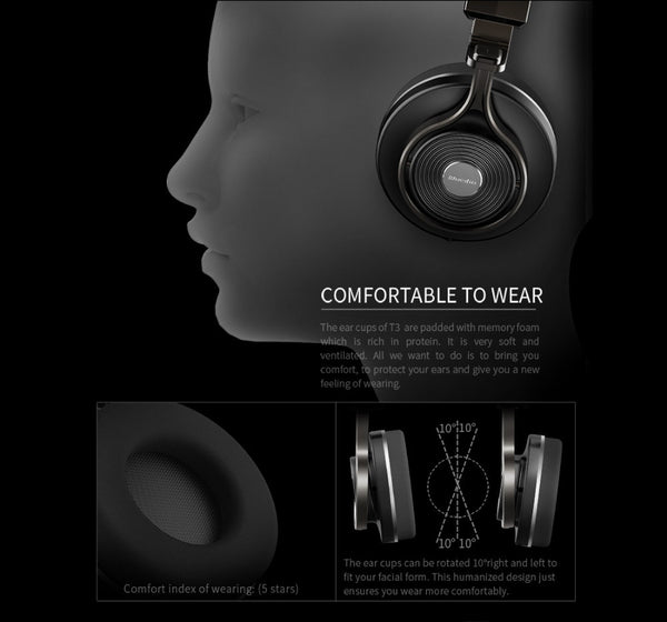 T3 is a foldable wireless bluetooth 4.1 headset and comes with the newest in bluetooth technology and a built-in microphone.