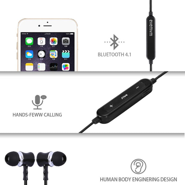 EVEMVM™ Sport is a wireless bluetooth 4.1 headset. The headset features Bluetooth 4.1 and a microphone. It even connects to all your favorite bluetooth devices, such as PC, Mac, Smartphones, IOS, Samsung etc.